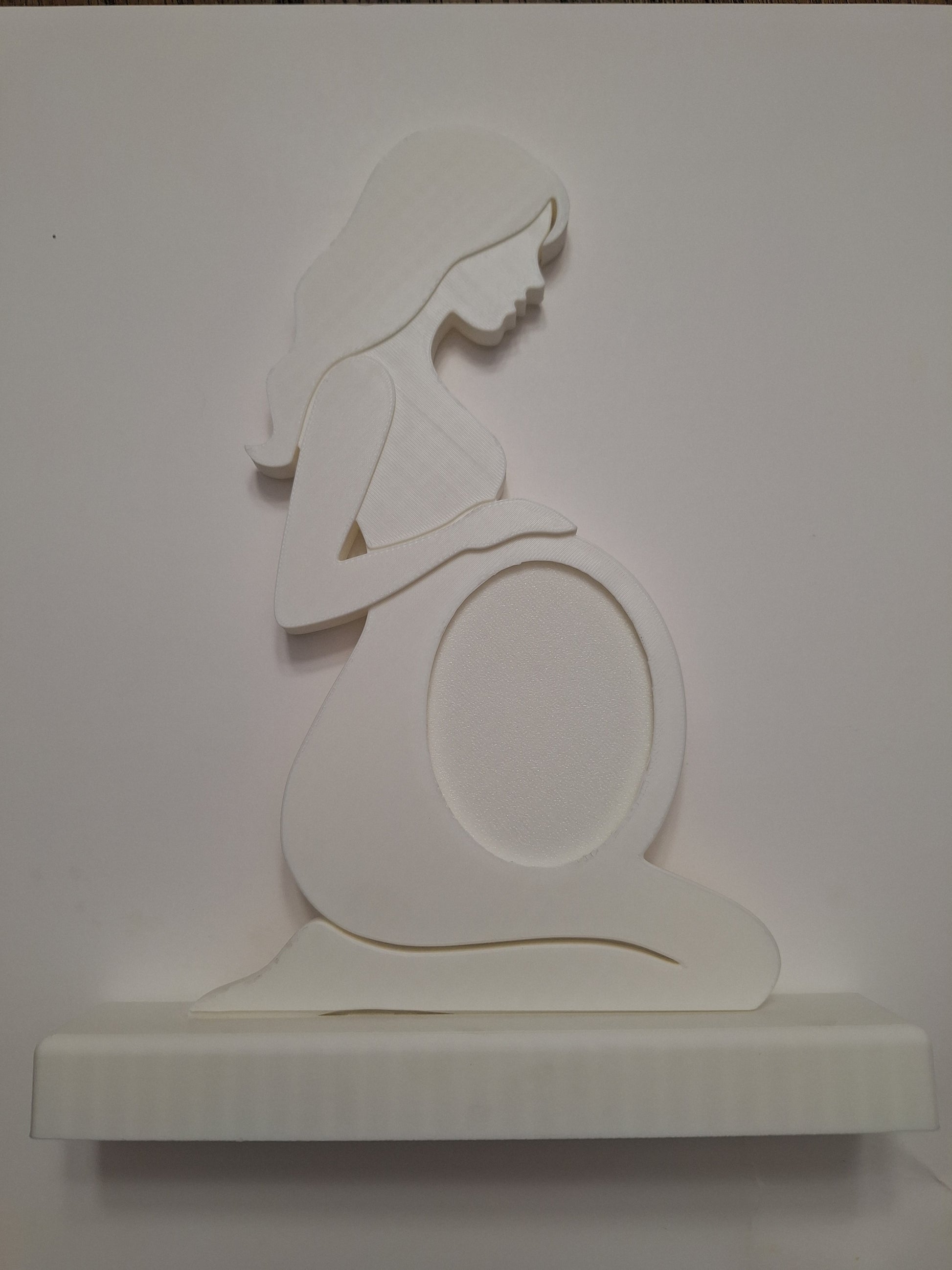 Display your baby’s first photo in style with this elegant pregnant silhouette sonogram holder. Featuring a kneeling figure cradling her belly, the round cutout perfectly frames and highlights your ultrasound image. The clean white finish and simple design make it a beautiful keepsake for expectant parents, baby showers, or nursery decor.